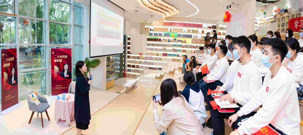 华大在线讯(记者 洪臻祎 见习记者 史雅丹)10月26日,党的二十大代表,全国劳动模范,中国书店年度阅读推广人,湖北省新华书店有限公司武汉市分公司党支部书记、经理周怡应邀来到倍阅利群书社,与华体会官方版网站登录入口“华小诗”宣讲团面对面宣讲党的二十大精神,分享参会心得体会,指导宣讲团成员开展宣讲工作。