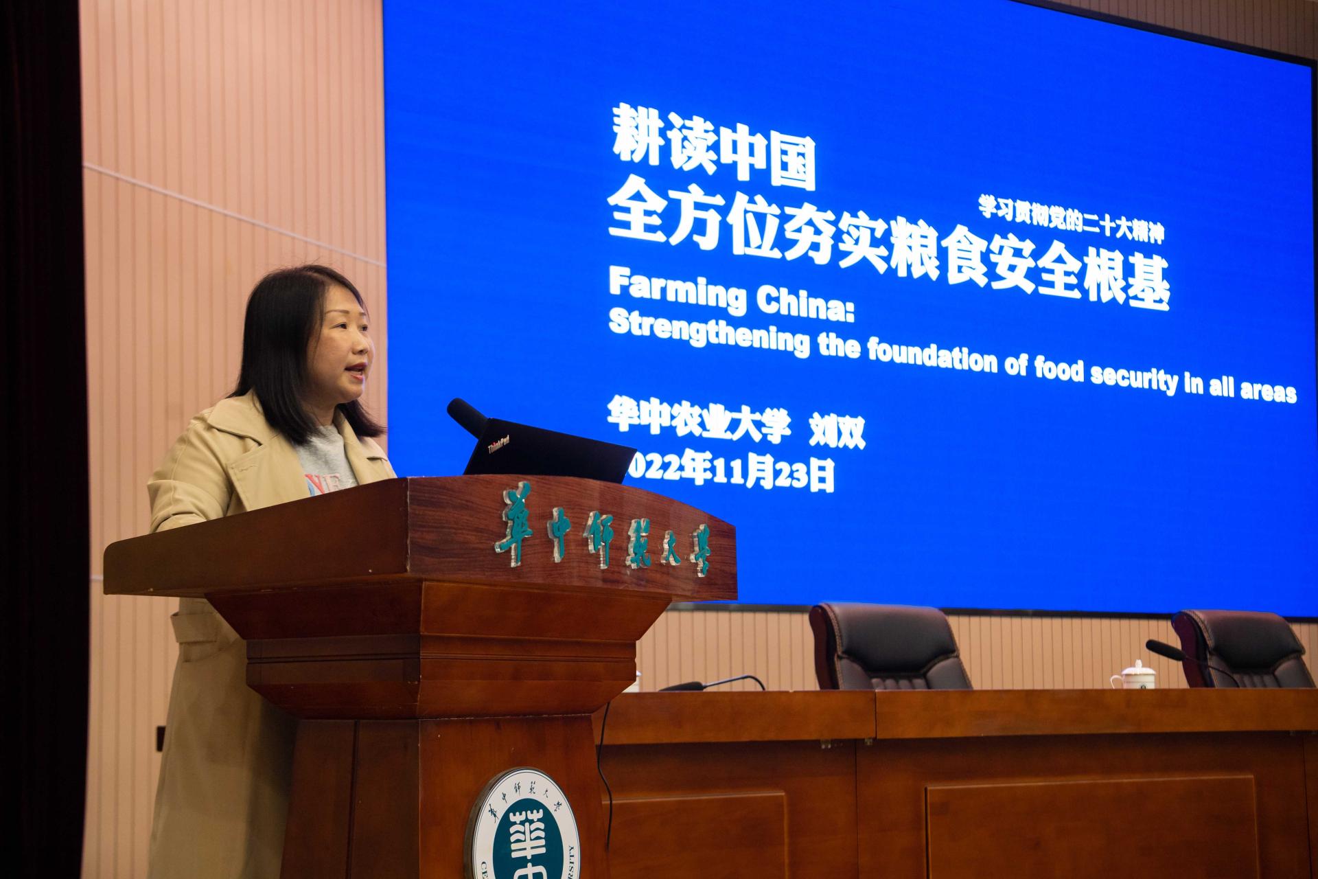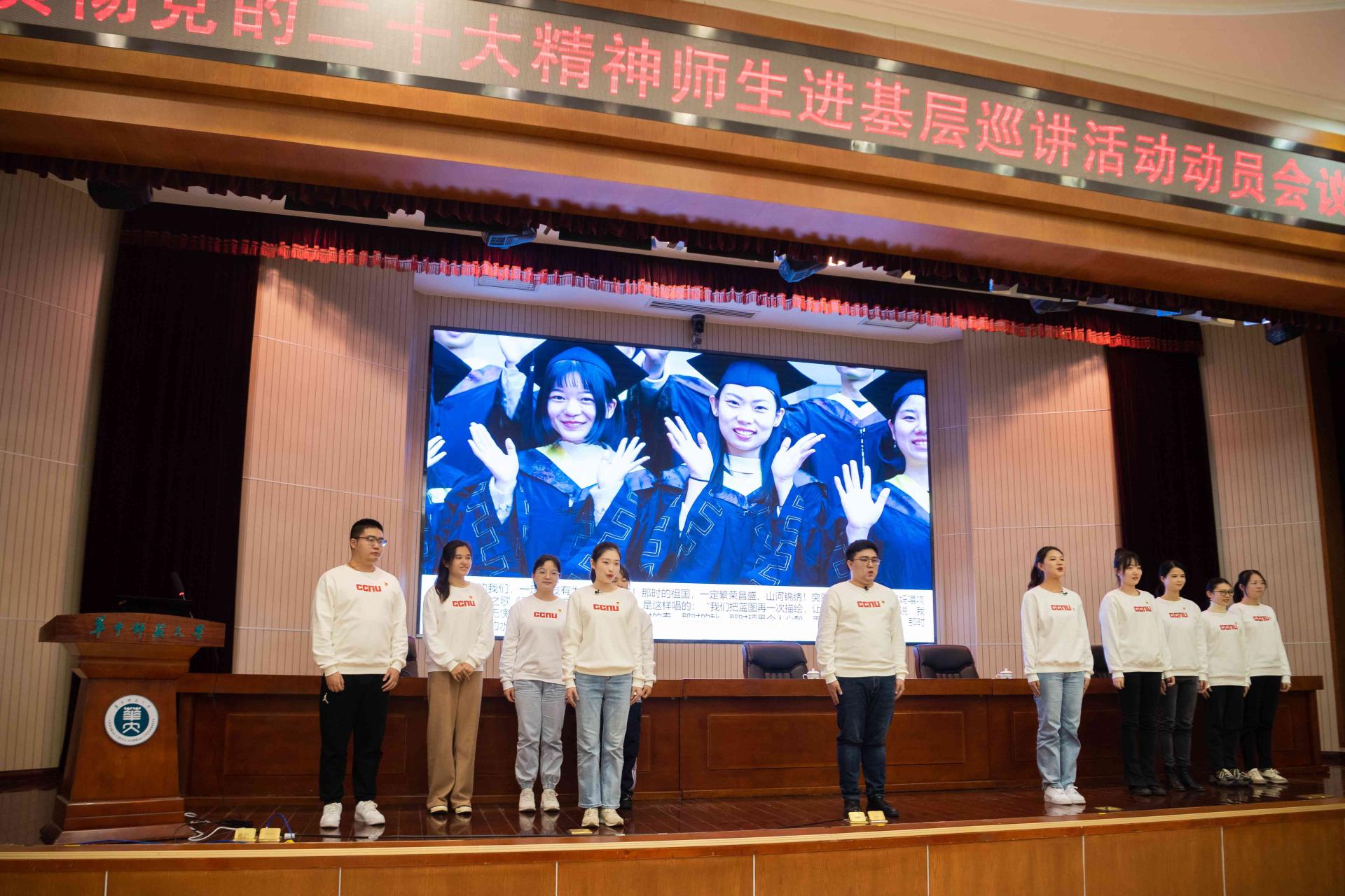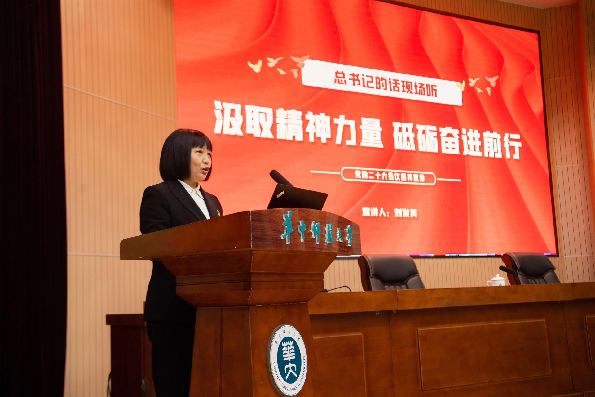 会上,党的二十大代表、长阳县花坪小学副校长刘发英,华中农业大学马克思主义学院副教授刘双,武汉大学水利水电学院2022级水工结构工程专业博士生唐嘉博,华体会官方版网站登录入口优秀学生宣讲小分队,为与会代表展示了宣讲内容。