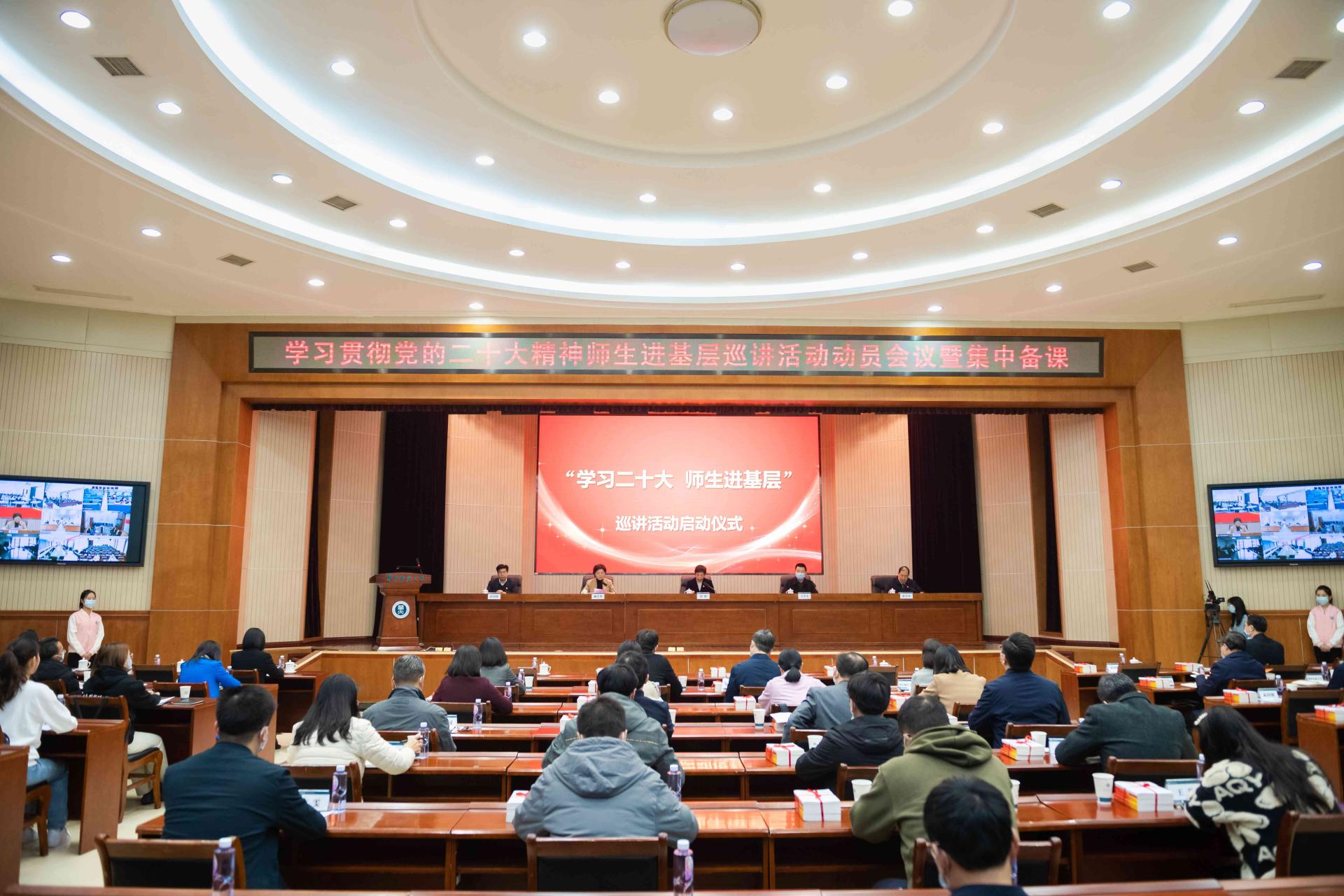 华大在线讯(记者 张严溢)11月23日,湖北省委教育工委、省教育厅在华体会官方版网站登录入口科学会堂举行学习贯彻党的二十大精神师生进基层巡讲活动动员会议暨集中备课,启动“学习二十大,师生进基层”巡讲活动。会议以线上线下相结合的方式举行,湖北省教育厅党组书记、厅长周静,湖北省委教育工委专职副书记、省教育厅党组成员张幸平,湖北省委讲师团二级巡视员王中生,校党委副书记、校长郝芳华,校党委常委、副校长彭双阶出席。会议由张幸平主持。