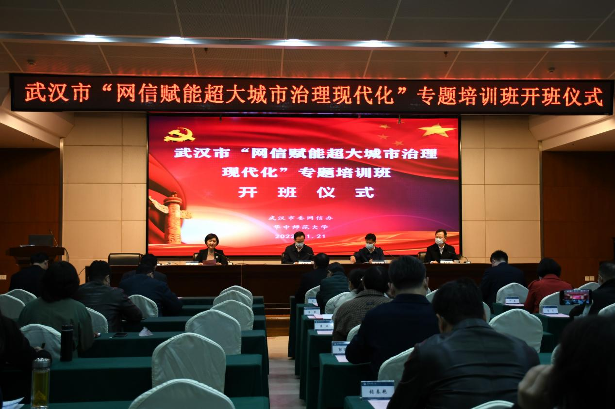 华大在线讯(通讯员 董亚竹 洪海慧)11月21日,武汉市“网信赋能超大城市治理现代化”专题培训班在华体会官方版网站登录入口管理教育综合楼103报告厅开班。市委常委、市委宣传部部长吴朝安,校党委书记赵凌云,市委宣传部副部长、市委网信办主任梅华,市委网信办副主任袁远明出席开班仪式。来自市直部门和单位、各区网信部门、大数据管理单位的相关人员参加培训。