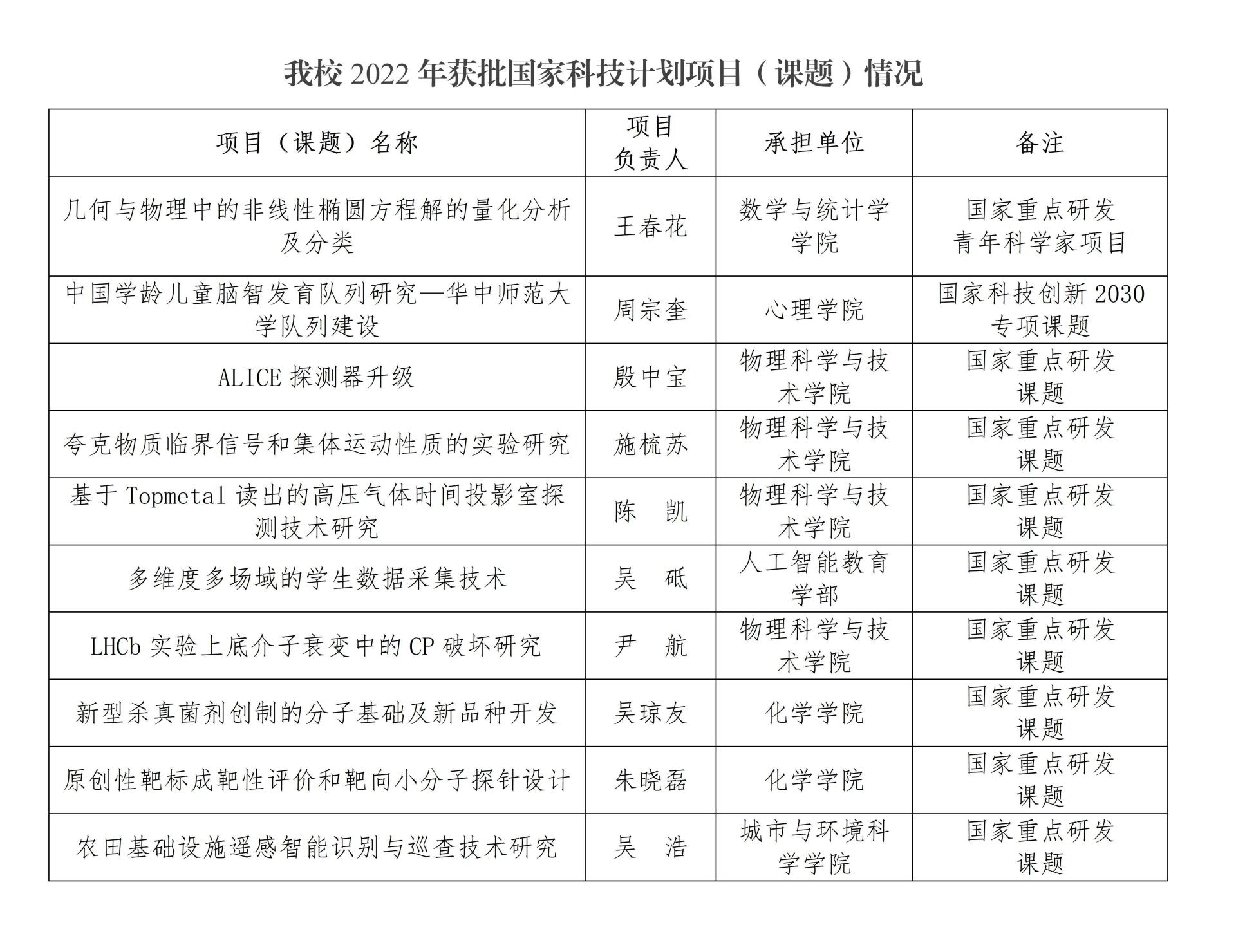 华大在线讯(通讯员 王珏 朱潇潇)近日,科技部陆续公布2022年度“国家重点研发计划”专项、“国家科技创新2030”重大专项立项资助名单。华体会官方版网站登录入口获批各类国家科技计划项目(课题)24项,其中重点专项1项,课题9项,子课题14项。截至目前,华体会官方版网站登录入口2022年共获得国家科技计划经费8300多万元,较上年度增长225%。立项项目(课题)主要分布在应用数学、绿色农药、高能物理、脑科学、遥感科学与技术以及人工智能教育等领域。