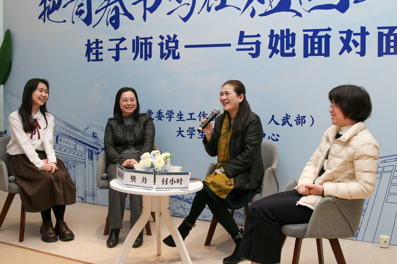 华大在线讯(记者 韩宇玺 见习记者 余佳仪)3月5日,“把青春书写在祖国大地上”桂子师说——与她面对面访谈活动在倍阅书店举行。湖北省农业生态保护站站长、生命科学学院96届校友樊丹、政治学部教授陈军亚、数学与统计学学院付小叶教授应邀作为访谈嘉宾,围绕“学业规划”“职业规划”“人生规划”三个话题,与现场师生畅聊青春故事,共话女性成长。党委学生工作部(人武部)、生命科学学院、中国农村研究院相关负责人参加活动。