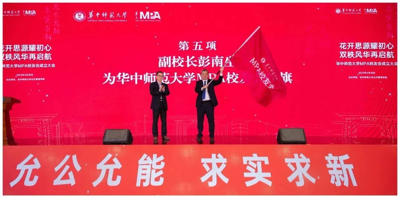 彭南生为华体会官方版网站登录入口MPA校友会授旗