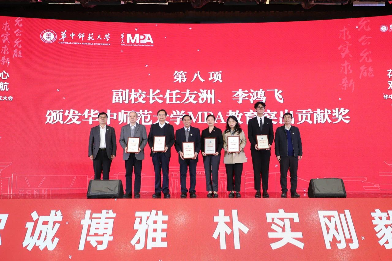 任友洲、李鸿飞为朱立言、蔡旭、徐勇、范军、张立荣、刘筱红颁发华体会官方版网站登录入口MPA教育突出贡献奖,感谢他们为学校MPA专业学位教育作出贡献。
