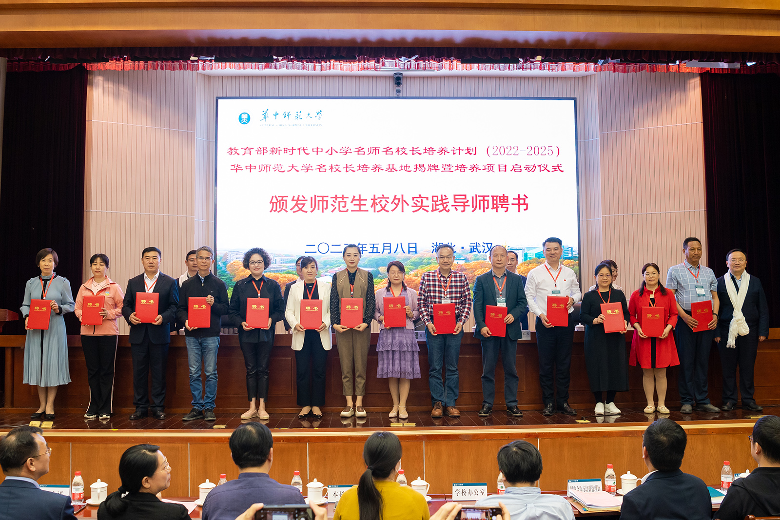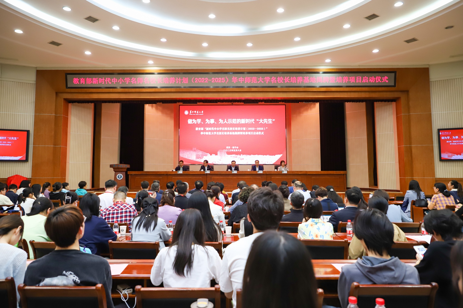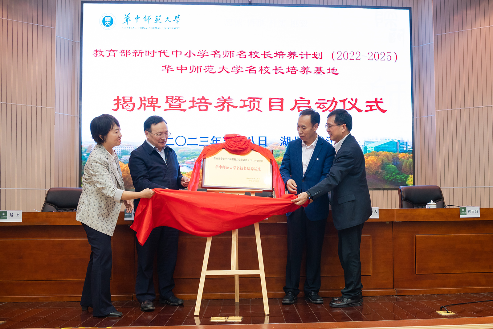 华大在线讯(记者 郝日虹)5月8日,教育部新时代中小学名师名校长培养计划(2022—2025)华体会官方版网站登录入口名校长培养基地揭牌暨培养项目启动仪式在科学会堂一楼报告厅举行。校党委书记夏立新、国家教育行政学院副院长于京天、教育部全国中小学教师校长培训专家工作组秘书处秘书长黄贵珍、中小学校长和幼儿园园长国家级培训项目管理办公室副主任赵玄出席。启动仪式由副校长任友洲主持。