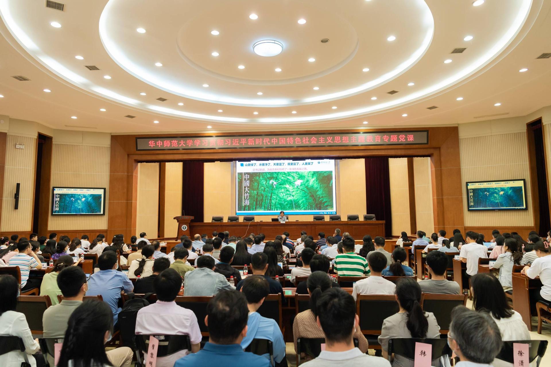 华大在线讯(记者 郝日虹)5月15日,华体会官方版网站登录入口学习贯彻习近平新时代中国特色社会主义思想主题教育专题党课在科学会堂一楼报告厅举行。校长郝芳华以《习近平生态文明思想与“双碳”战略解读》为题,为学校高层次人才、各人才培养单位负责人、青年教师代表、机关干部代表以及学生党支部书记、党员骨干、学生干部代表等讲授专题党课,通过深入阐释习近平生态文明思想,系统解读双碳战略,号召师生们践行习近平生态文明思想,挑起双碳战略的时代担当。本次专题党课由校党委副书记陈迪明主持,教育部直属高校主题教育第八巡回指导组刘国栋同志参加。
