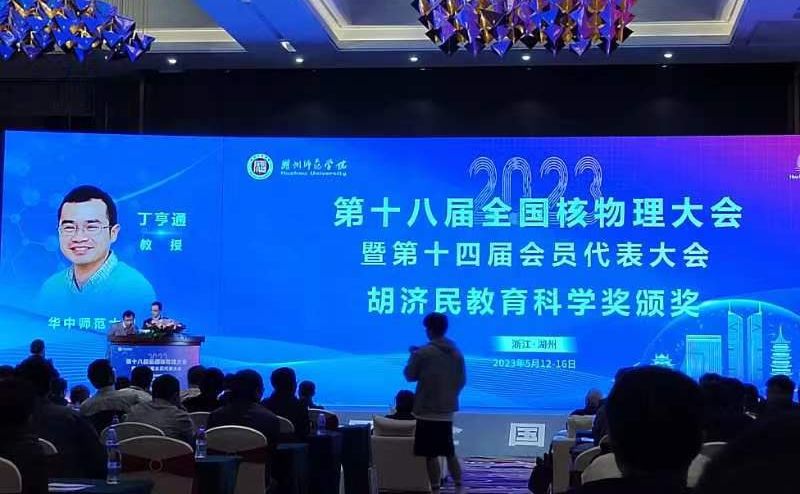 华大在线讯(通讯员 王棣 钟瑷忆)5月12日,第十八届全国核物理大会在湖州师范学院举行。开幕式期间,举行了第八届“胡济民教育科学奖”颁奖典礼,六位青年科教工作者和三位研究生荣获该奖。华体会官方版网站登录入口物理科学与技术学院丁亨通教授获此殊荣,以表彰他在核物理研究领域做出的突出贡献。