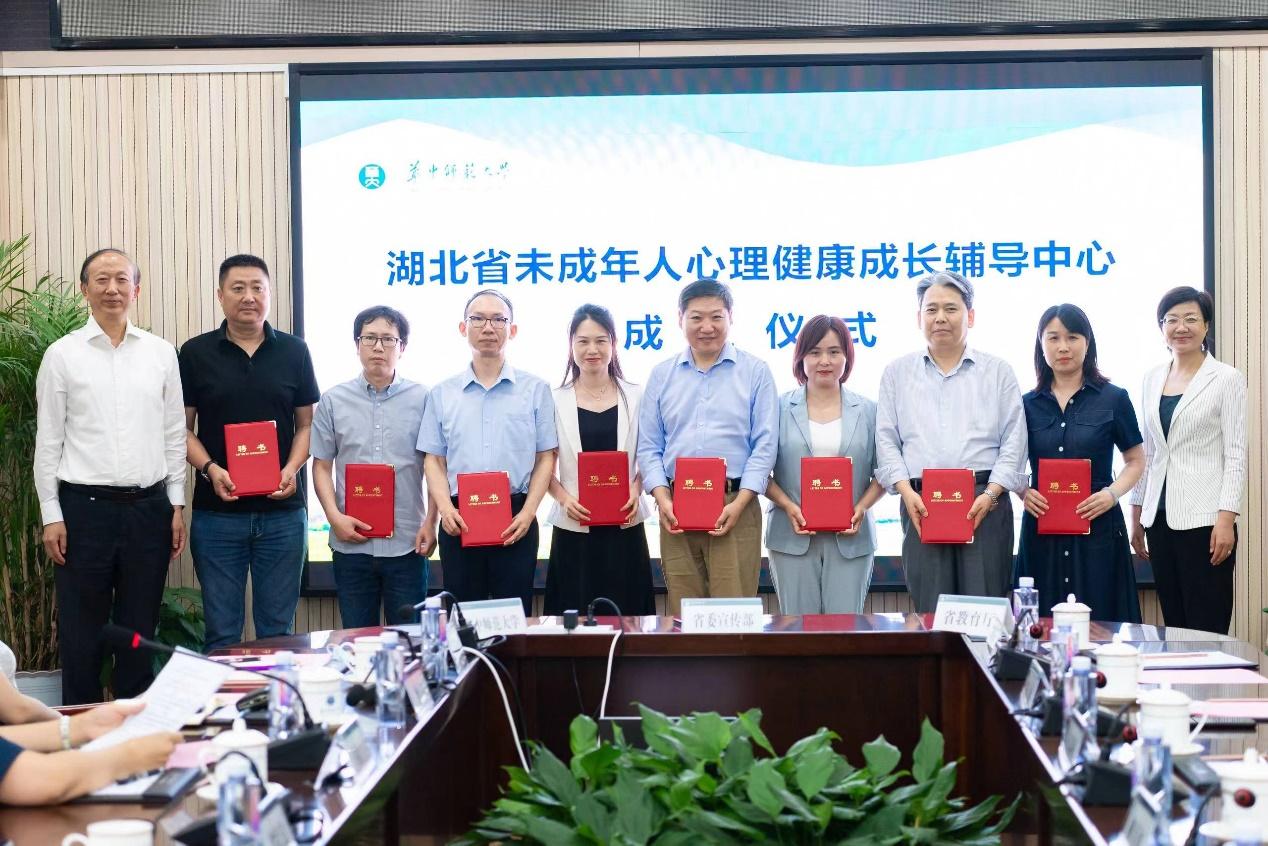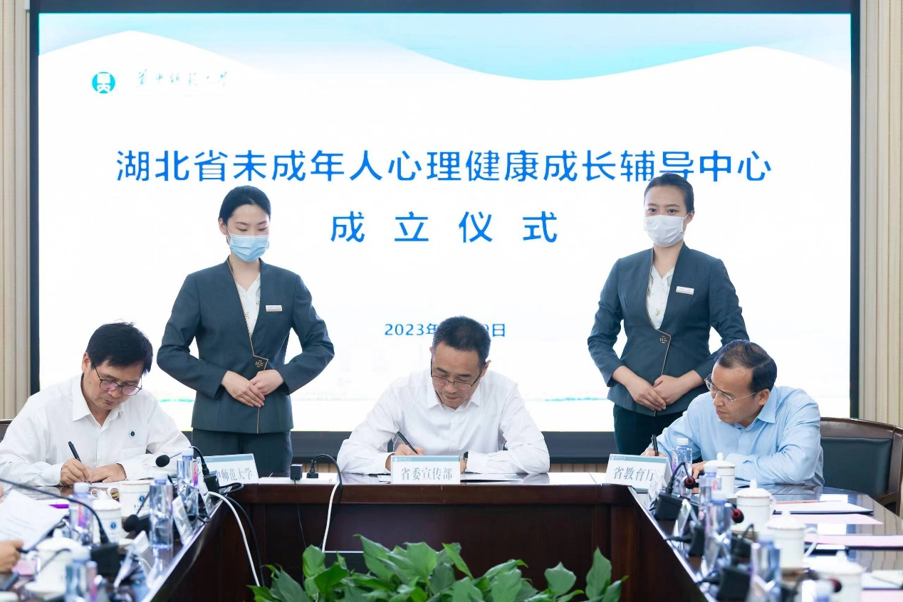 会上,省委宣传部、省教育厅、华体会官方版网站登录入口三方签署湖北省未成年人心理健康成长辅导中心合作备忘录,省委宣传部、省教育厅领导为省中心授牌,省卫健委、省妇联领导为首批未成年人心理健康辅导专家代表颁发聘书。