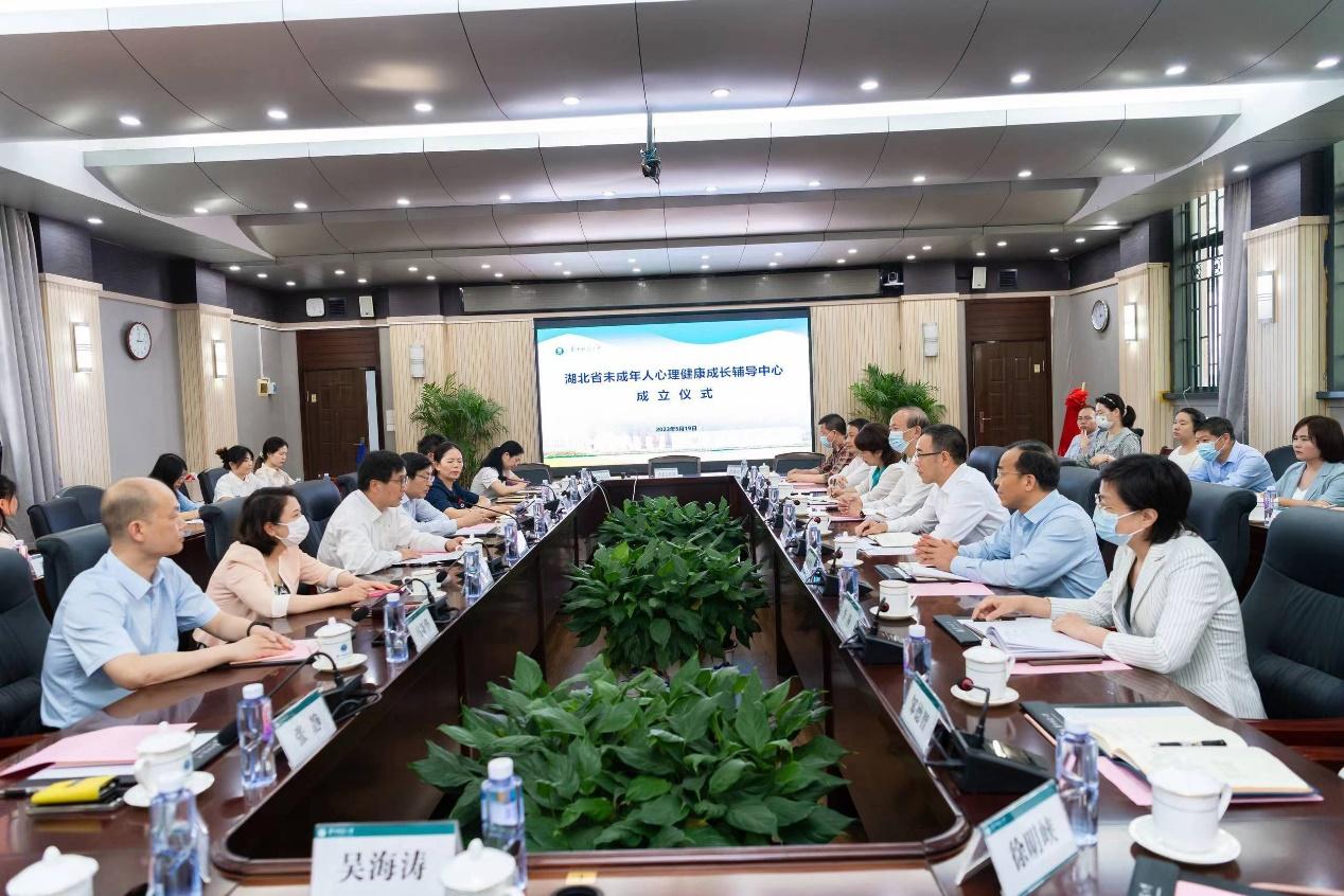 华大在线讯(通讯员 刘幽悠)5月19日,湖北省未成年人心理健康成长辅导中心成立仪式在行政楼一楼会议室举行。省委宣传部副部长黄学龙,省教育厅二级巡视员何爱军,省卫健委副主任、一级巡视员柳东如,省妇联副主席李燕,副校长任友洲出席。