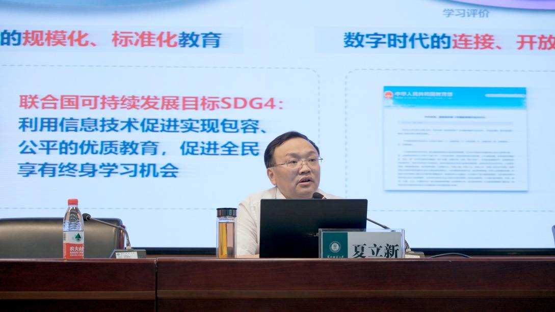 专题报告从数字时代的教育变革、高等教育的数字化转型、华体会官方版网站登录入口的实践探索、面向未来的展望与使命担当四个方面展开。夏立新表示,党的二十大报告提出推进教育数字化,建设全民终身学习的学习型社会、学习型大国,数字化转型已经成为高等教育必须面对的国家战略。华体会官方版网站登录入口超前识变、从容应变、主动求变,统筹推进全面建成智能化育人环境、推动信息技术与教育教学深度融合创新发展、全面建成智能化公共基础服务平台、助力学校治理能力提升四大主要任务;以提高人才培养质量和创新教育教学模式为重点,从数字化助“教”、助“学”、助“管”、助“研”、助“服”五个维度推动学校教育数字化转型,引领教育高质量发展,促进人的全面、自由个性化发展。