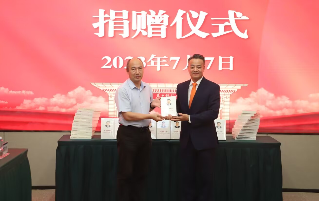 夏立新向北京崇学文化发展有限公司总经理余富文颁发捐赠证书并表达诚挚谢意。夏立新回顾了华体会官方版网站登录入口一百二十年的红色根脉,并表示,此次捐赠对全校师生深入学习贯彻习近平新时代中国特色社会主义思想、进一步推进学校主题教育深入开展具有重要意义。学校将发挥多语种学科和学术优势,深入研究、阐释、宣传《习近平谈治国理政》,为讲好中国故事、传播中国声音,贡献华体会(中国)人的力量。