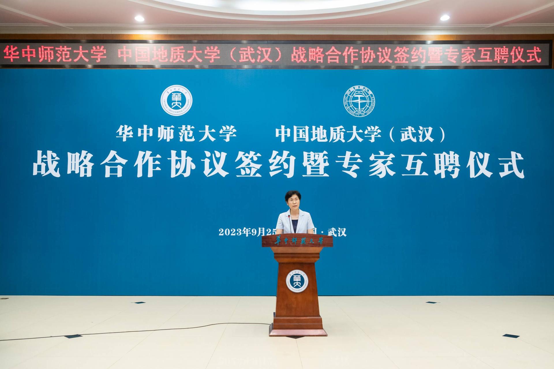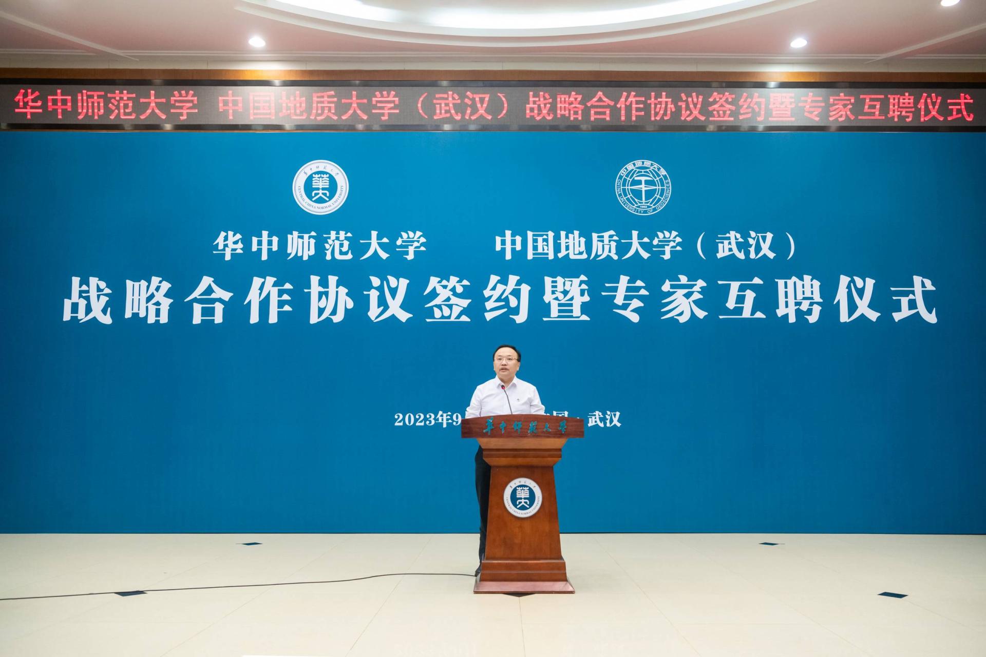 夏立新在讲话中表示,两校签订战略合作协议,充分发挥各自学科特色优势,在新工科、新文科建设上相互支持、携手共进,既是学校办学史上的一件大事,也是湖北高等教育事业高质量发展的一个重要里程碑。桂子山与南望山比肩而立,两校渊源深厚、历久弥新。“艰苦朴素、求真务实”是地质大学校训,“朴实”二字也刻入华体会(中国)精神,写进华体会(中国)血脉。严谨求实的科学精神,广博高雅的人文精神,自强不息的奋斗精神,立德树人的育才精神,构成了地大和华体会(中国)共同的文化基因。精神气质相近、学科特色互补为两校携手发展奠定了良好基础。希望两校在今后的合作中扎根中国大地,携手服务党和国家重大战略需求,聚焦重点领域,强化优势互补,优化合作机制,拓展合作范围,实现双向赋能,为世界一流大学建设闯新路、创示范,为构建高质量高等教育体系、推动实现中国式现代化作出更大贡献。