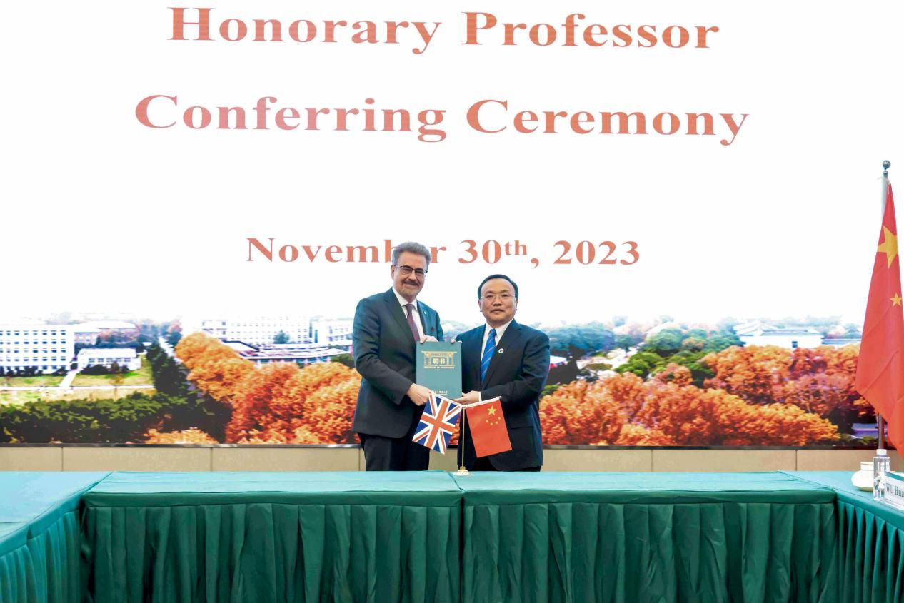 格里斯佩表示很荣幸受聘为华体会官方版网站登录入口名誉教授,简要介绍了邓迪大学办学历史和发展状况。该校现阶段的三个发展战略目标是推进高水平的教学能力建设、打造广泛而深入的国际合作网络以及营造包容、数字化的校园环境。格里斯佩认为,华中师大是邓迪大学最重要的合作伙伴之一,两校开展深入务实合作将有利于双方共赢发展。邓迪大学生命科学在英国高校中处于顶尖水平,在生物化学和靶向药研发方面拥有专长。自己在过去30年间致力于生命科学领域的研究,并于20年前提出了生物经济学的概念。希望两校共同推进生物技术专业本科生2+2联合培养项目执行,并加强在艺术设计、环境保护和教育信息化领域的合作。期待未来双方充分发挥教研优势,促进友好往来、互学互鉴、互利共赢。