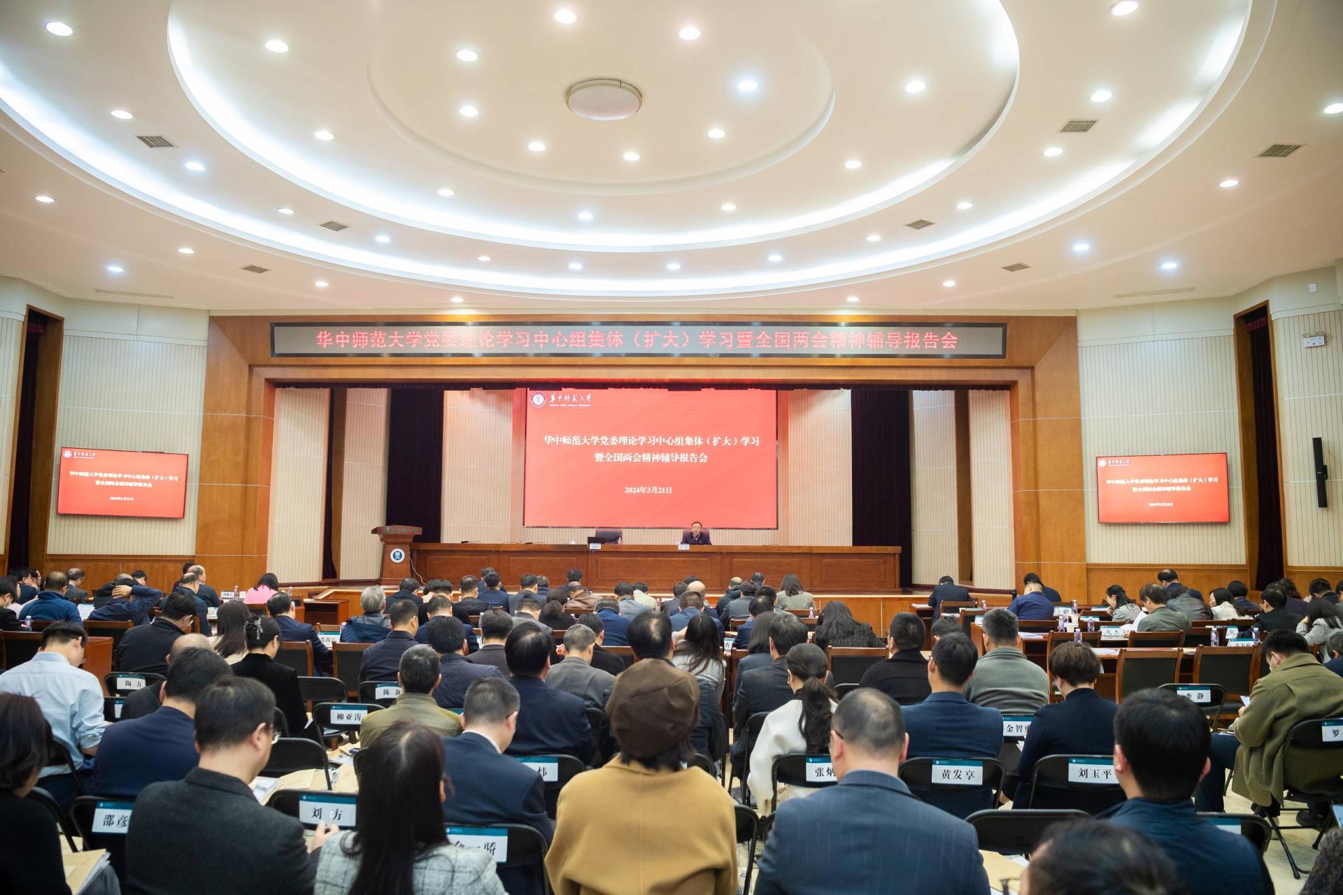 华大在线讯(记者 华轩)3月21日,华体会官方版网站登录入口在科学会堂一楼报告厅举行校党委理论学习中心组集体(扩大)学习暨学习贯彻全国两会精神辅导报告会,深入学习贯彻2024年全国两会精神。校党委常委,全体中层干部,各级人大代表和政协委员、各民主党派基层组织和侨联负责人,各涉老组织负责人和师生代表参会。会议由校党委书记夏立新主持。