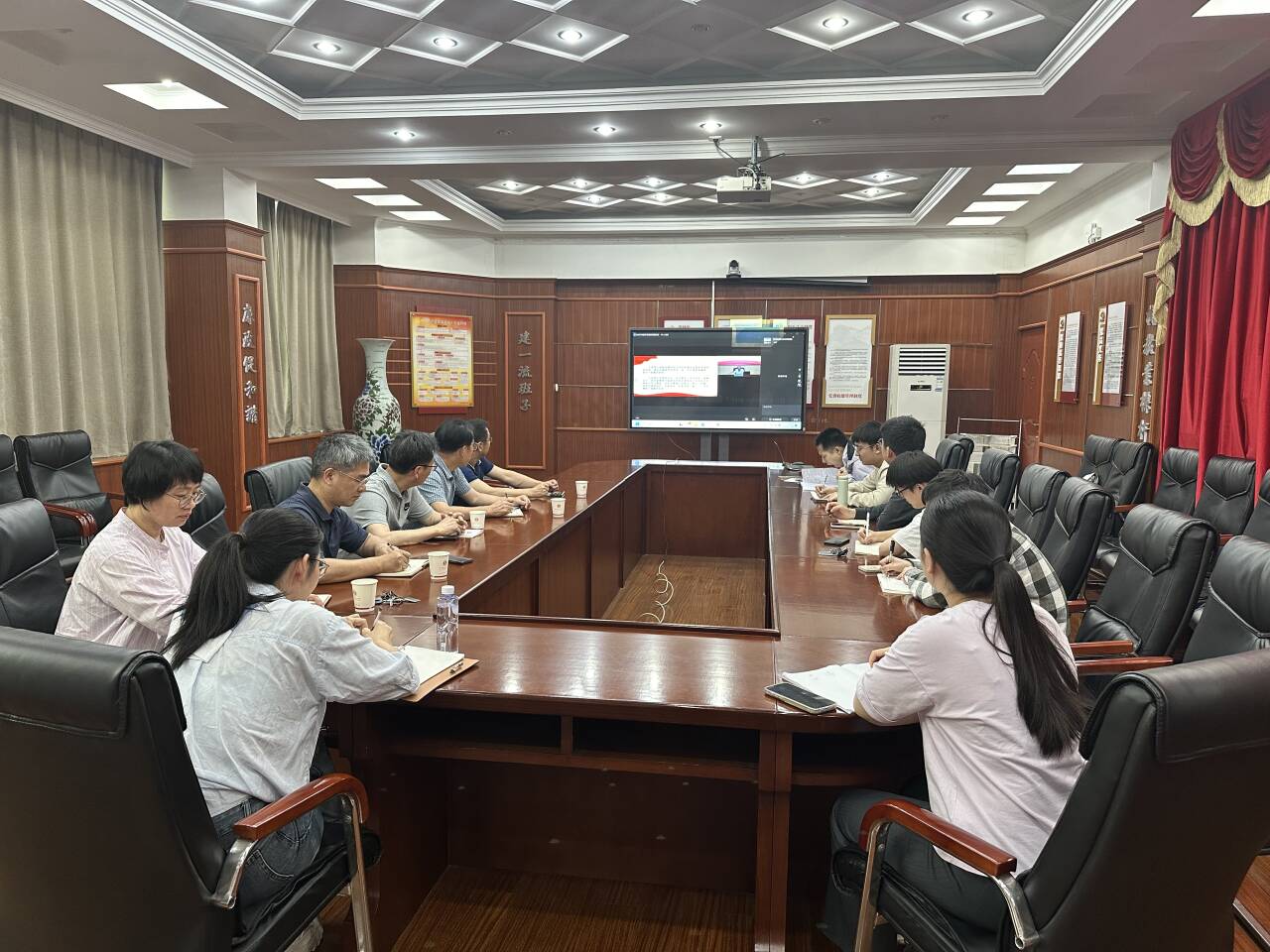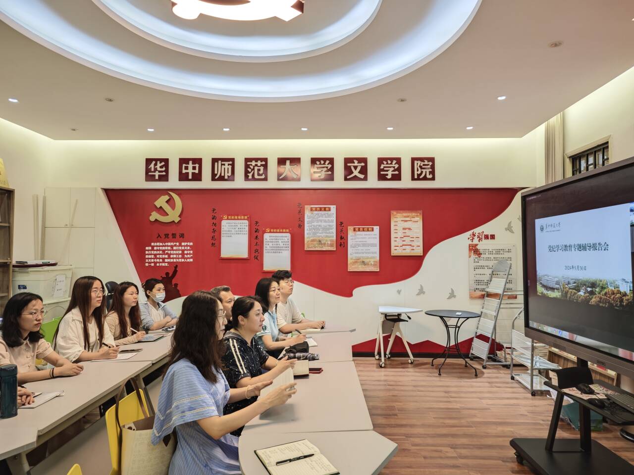 全体在校校领导、校党委委员、校纪委委员、中层领导干部在科学会堂一楼报告厅主会场参会,各分党委(党总支)委员与支部书记、相关职能部门党支部成员在分会场集中线上参会。