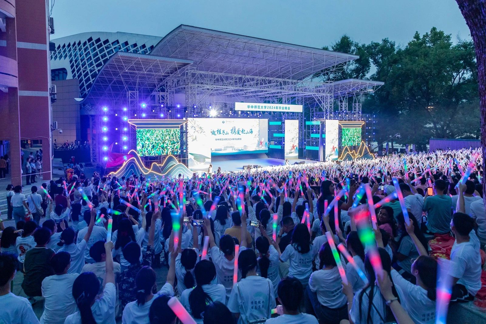 “梦起桂子山 携爱赴山海”2024年毕业晚会于大学生活动中心设置分会场,中国青年报、长江日报、极目新闻、青春武汉、华大青年等多家媒体平台同步进行了直播。