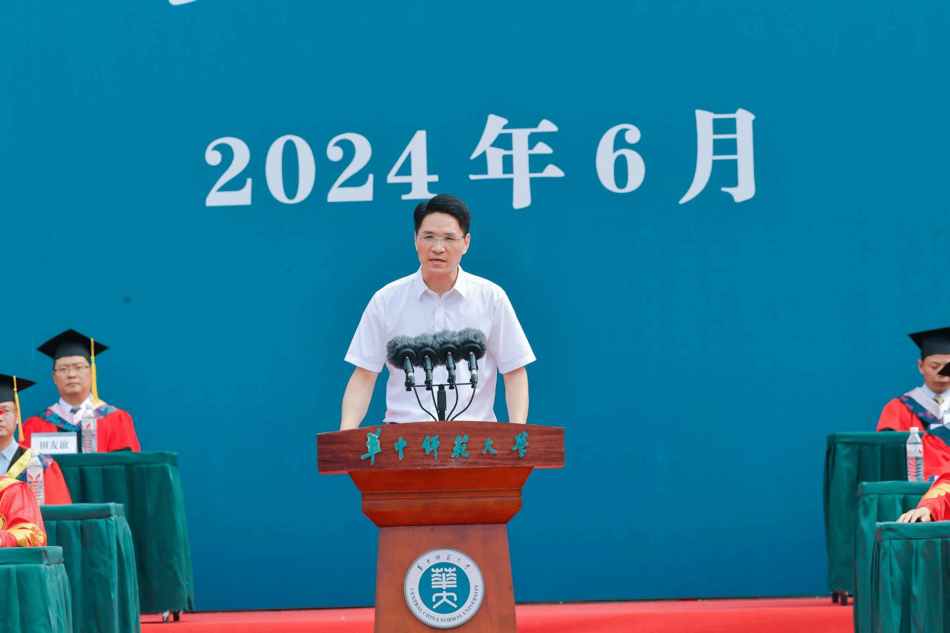 华大在线讯(通讯员 舒佳欣)6月18日,华体会官方版网站登录入口2024年毕业典礼暨学位授予仪式在佑铭体育场举行。校党委书记夏立新、校长彭双阶、校党委副书记查道林、副校长彭南生,校党委副书记、纪委书记刘继文以及学校学术委员会代表、教师代表、校友代表、各职能部门和学院负责人出席,与家长代表共同见证8757名2024届毕业生圆满完成学业,为同学们开启未来的追光逐梦之旅践行。典礼由校党委副书记陈迪明主持。