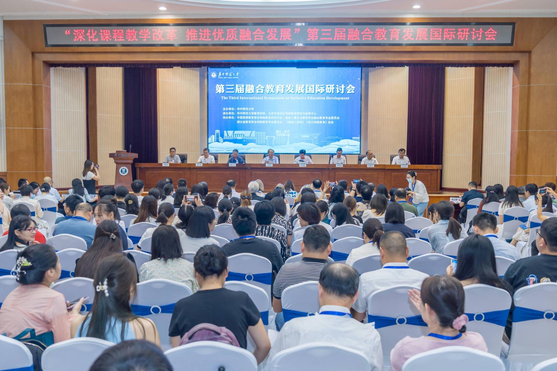 华大在线讯(通讯员 陈孝荣 陈钰心 朱楠)6月23日,第三届融合教育发展国际研讨会在校举行。来自全国多所高校和实践领域的专家学者、一线教师以及国际知名大学专家教授围绕“深化课程教学改革,推进优质融合发展”主题,就融合教育课程与教学的理论发展前沿、融合教育课程与教学的实践经验探索等议题进行深入研讨,共谋融合教育内涵式发展。教育部基础教育司司长田祖荫、校长彭双阶、中国高等教育学会特殊教育研究分会理事长顾定倩、中国残疾人联合会副主席张银良等出席开幕式。开幕式由副校长李鸿飞主持。