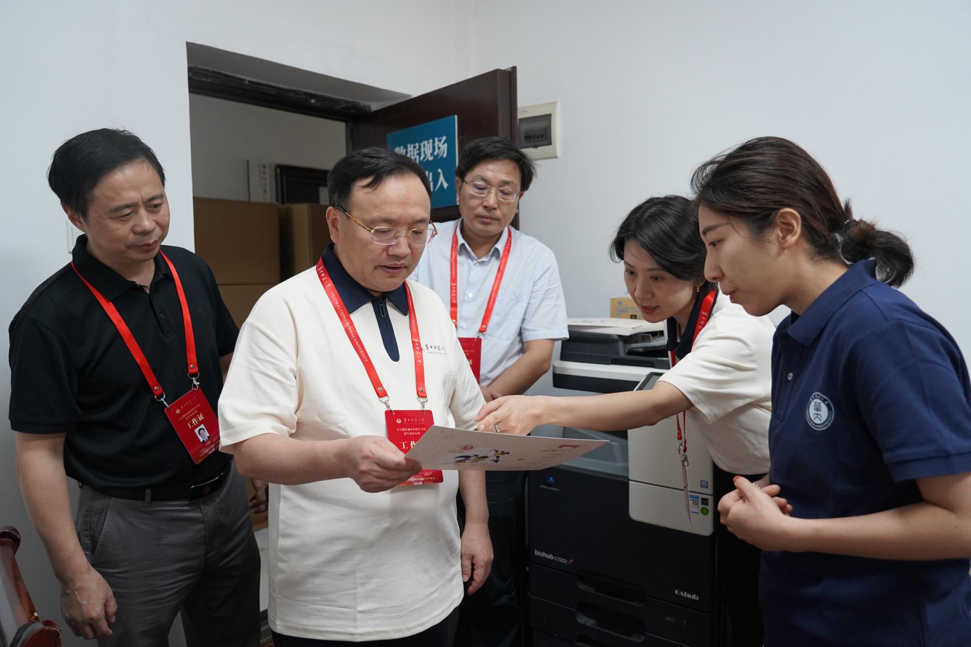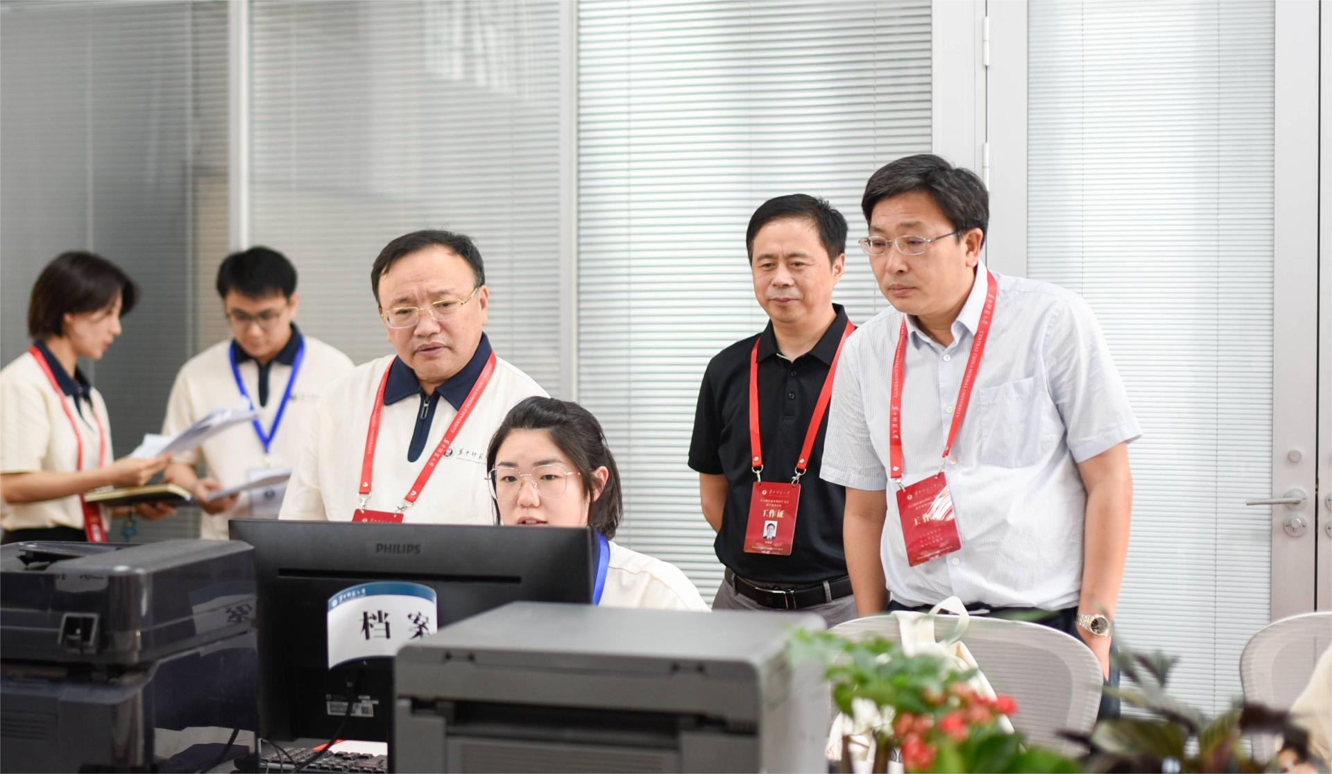 在本科招生录取现场,“阳光招生,科学选才”的标语突出醒目,教育部高校招生“十严禁”“30个不得”“八项基本要求”等规定悬挂于墙,清晰显眼。20余名工作人员分别坚守在招生咨询、系统录检、资格审查、数据处理等岗位,分工明确,流程紧凑,各项工作井然有序。夏立新一行与现场工作人员亲切交流,详细了解招生录取的工作流程,并就相关注意事项进行了交流。通过招生录取可视化数据大屏,本科生院相关负责人向校领导汇报了华体会官方版网站登录入口招生录取进度和生源质量等情况,重点介绍了首次招生的本研衔接公费师范生的招生录取等相关情况。