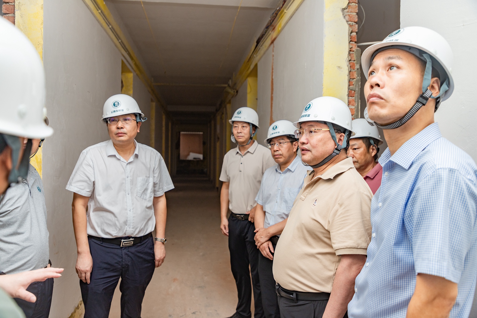 夏立新、彭双阶一行还先后到校史馆南侧景观提升工程工地、国交一栋宿舍改造工地、南门岗亭、佑铭体育馆、学子餐厅等地,看望慰问暑假期间在一线的工作人员,现场听取了关于施工方案、工程进度等情况汇报,实地查看工程进展。