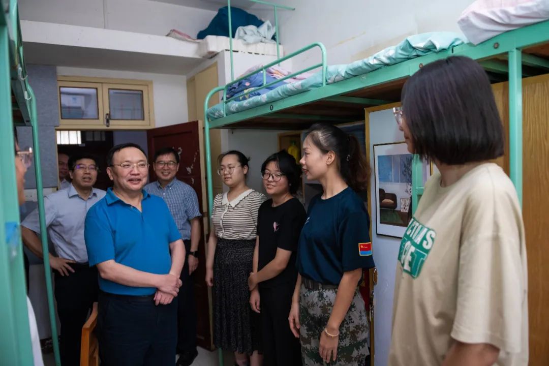 开学当日,校党委书记夏立新、校长彭双阶、副校长任友洲等一行走访看望新生。“今天天气比较热,报到顺利吗”“来到华体会(中国),对学校环境满意吗”“住在一个寝室是缘分,大家要相互照顾”“希望你们好好学习,珍惜时光,学校会努力为大家提供良好的学习和生活条件”……校领导一行先后走访了东区学生宿舍9栋、国交学生宿舍5栋和南湖学生宿舍12栋、13栋,看望了数学与统计学学院、外国语学院、国际文化交流学院、体育学院、计算机学院2024级新生,了解同学们生活情况,勉励他们在华体会(中国)有更好的成长与发展。