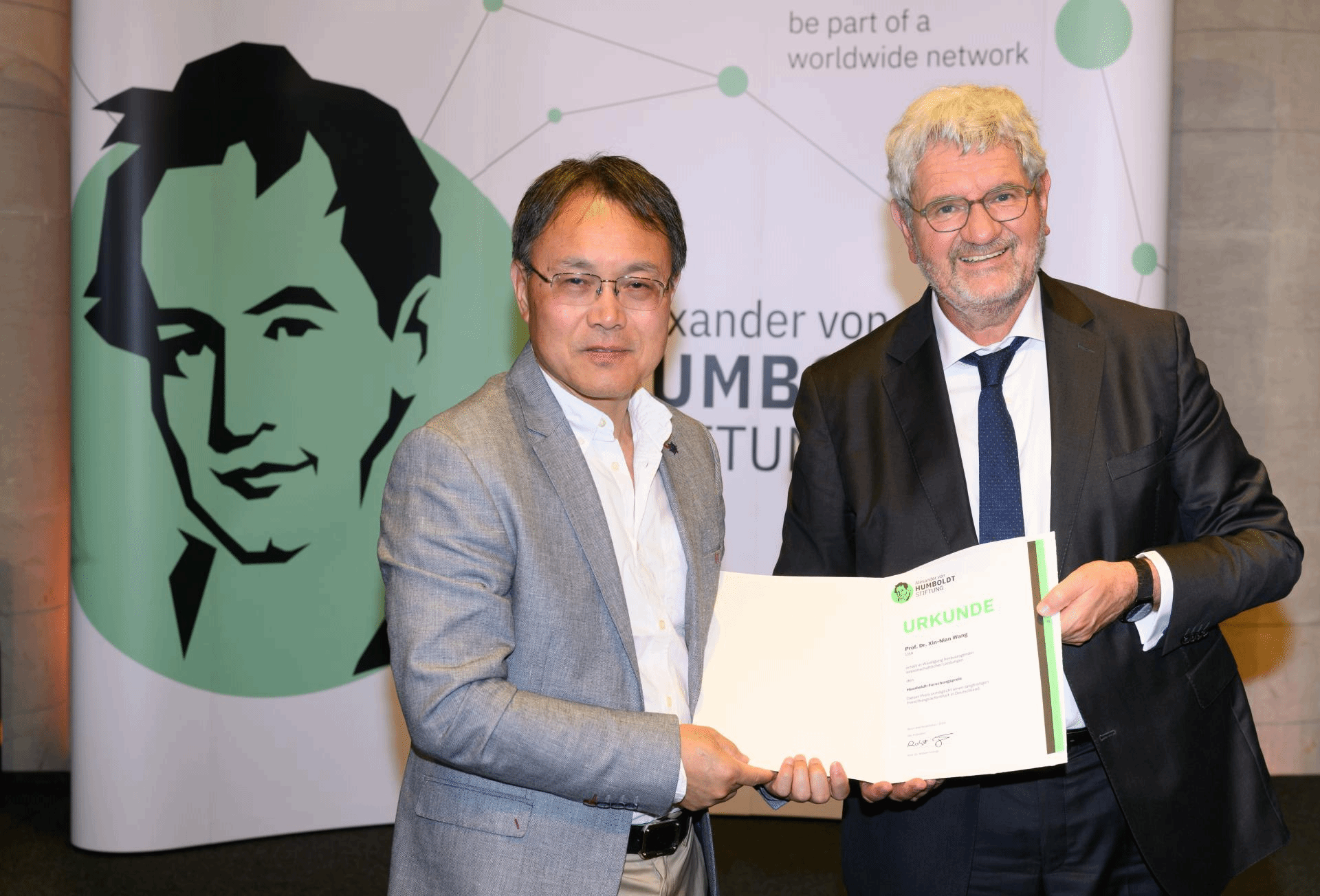 洪堡研究奖(Humboldt Research Award),是由德国亚历山大·洪堡基金会于1972年设立的,旨在全球范围内奖励在基础研究、理论创新、学科引领等方面取得卓越成就的科学家,每年颁发不超过100名获奖者。获奖者将被邀请到德国的科研机构进行合作研究,以促进国际科研合作与交流。洪堡研究奖不接受个人申请,只能由德国著名科研机构或者洪堡研究奖获得者联合推荐。被推荐人必须取得有国际影响力的学术成果,未来几年能继续活跃在学术领域从事科学研究工作。