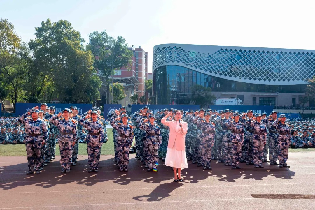 开学典礼后,2024级本科新生军训总结汇报表演。夏立新在军训团团长的陪同下对各学院方阵进行检阅。各方阵队列以昂扬饱满的状态展现了新华体会(中国)人锐意进取的精神面貌。