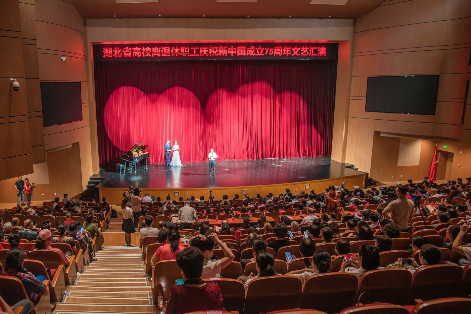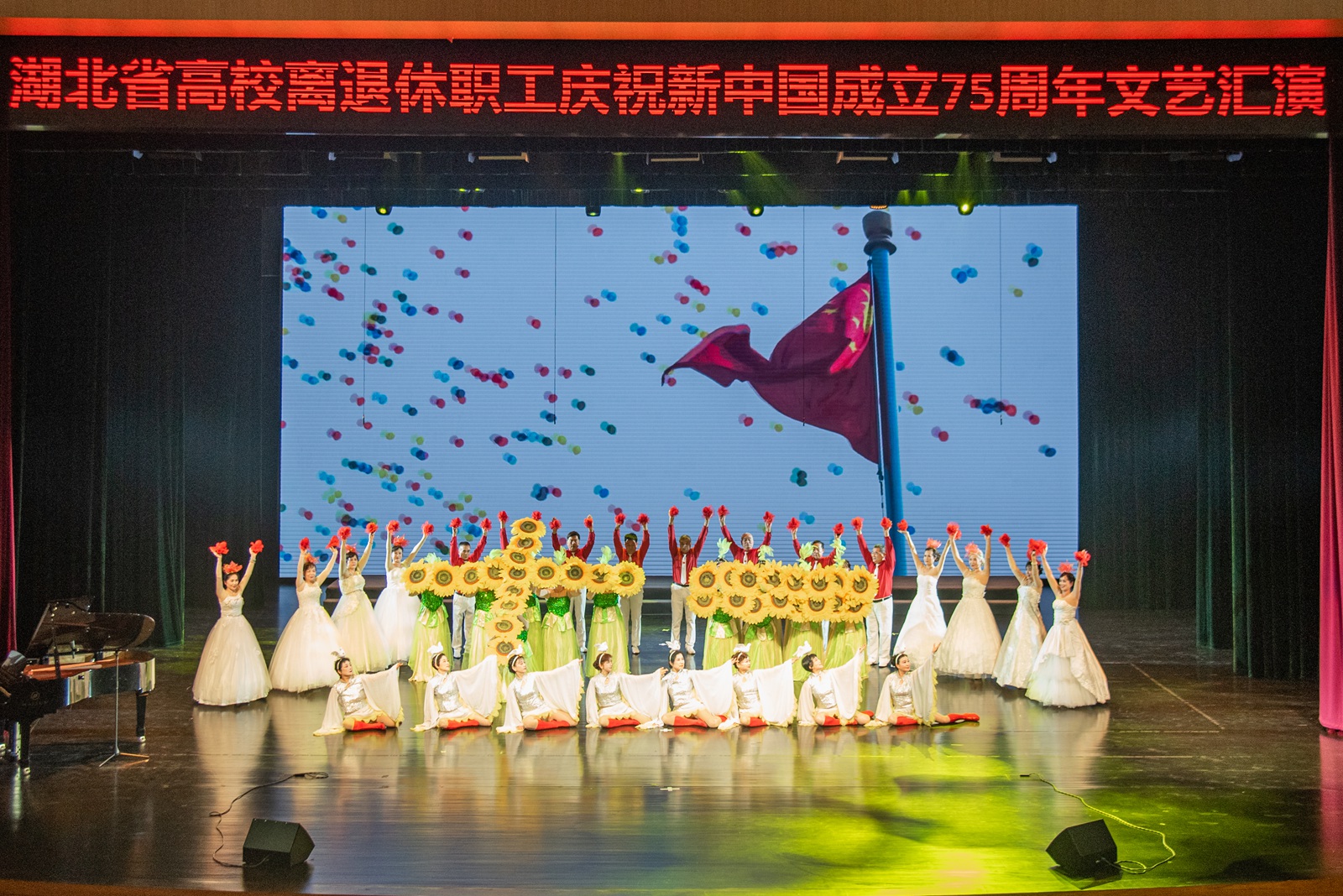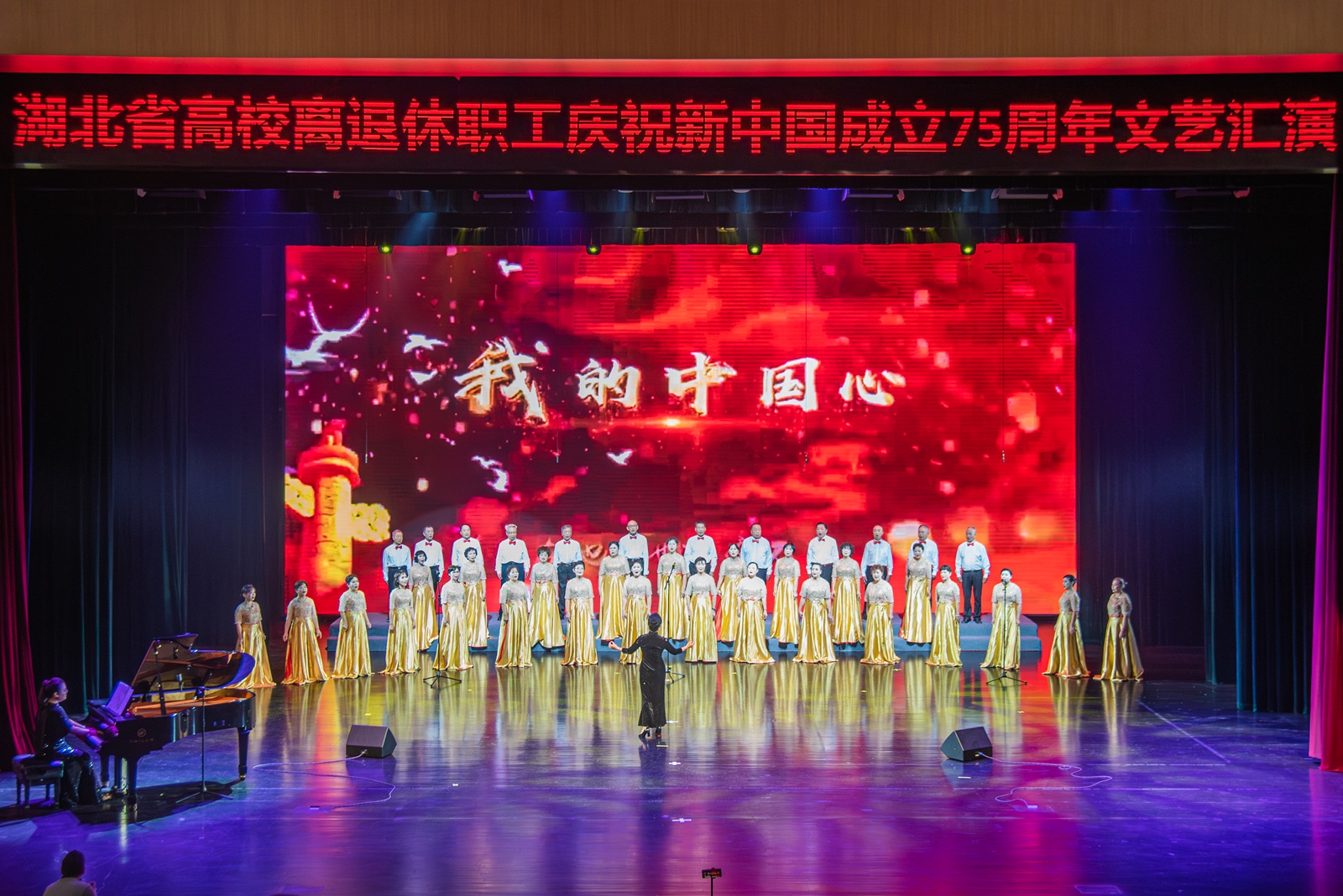 华大在线讯(记者 郑鹏昆 吕雨馨)9月27日,湖北省高校离退休教职工庆祝新中国成立75周年文艺汇演在大学生活动中心大礼堂举行。来自武汉大学、华中科技大学、湖北大学、三峡大学和华体会官方版网站登录入口等全省24所高校千余名老同志齐聚一堂,用歌唱、舞蹈、朗诵、时装秀、器乐演奏等形式,展银龄风采,颂繁荣昌盛,献礼新中国75周年华诞。