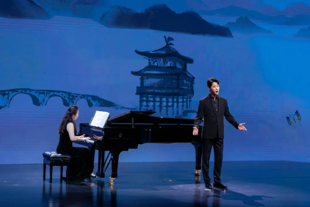 一首极富情感张力的《忆秦娥•恒山月》拉开了音乐会序幕,高山苍茫永恒,衬托出离别的伤感和人生的孤寂。《钗头凤》《春思曲》借复杂多变的调性流露出恋人间的相思之切,传递出哀婉的凄楚痴情和缱绻情思。《我住长江头》用通俗晓畅的语言讲述了女子对爱情的执着追求和热切期望。古雅蕴藉的《听雨》中感受江南游子客居北方的思乡情结。月光如水,勾起往日情愫,曲调清新的《山中》将诗人徐志摩的浪漫情意娓娓道来。