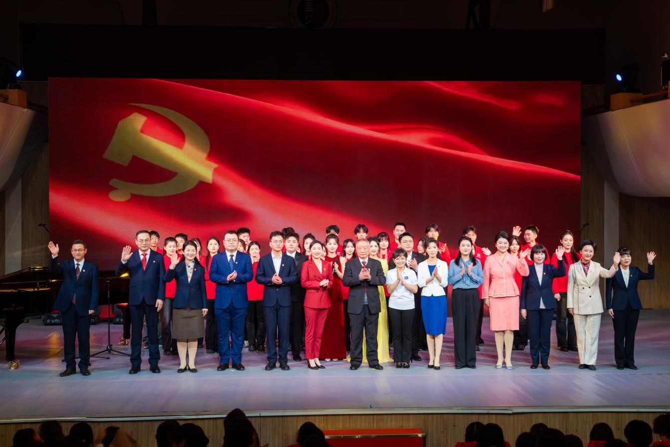 “从小爷爷对我说,吃水不忘挖井人,曾经苦难才明白,没有共产党,哪有新中国“展演在一曲《在灿烂的阳光下》中拉开序幕。展演中,师生把《国际歌》《保卫黄河》《春天的故事》等歌曲,与英雄人物或重大事件紧密结合,进行了精彩呈现。