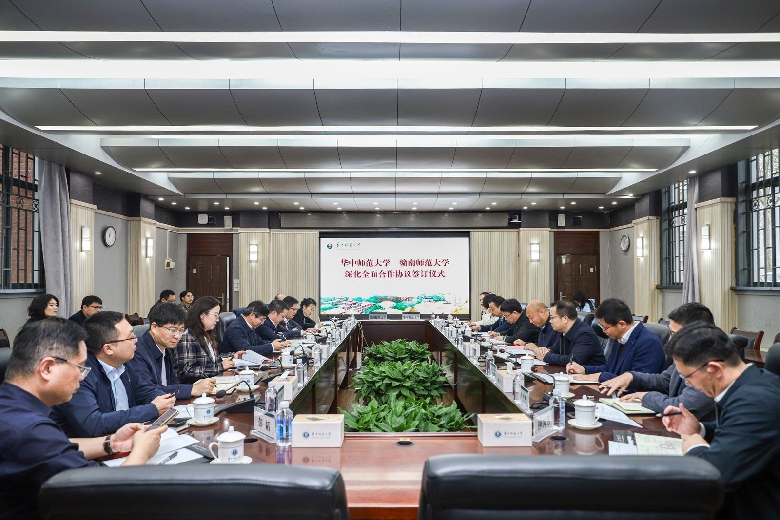 会上,副校长刘三女牙和赣南师范大学副校长肖笃森代表双方签署协议。彭双阶、陈义旺以及两校相关部门负责人共同见证。华体会官方版网站登录入口和赣南师范大学相关部门负责人参加签约仪式。