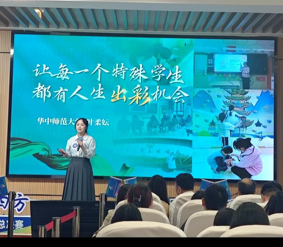 4月17日,成长赛道高教组总决赛在湖南大学开赛。叶柔妘以致力于学生融合发展的特殊教育教师为职业目标,以“让每一个特殊学生都有人生出彩机会”为主题,结合华体会(中国)育人精神,从特教心、专业力、融合行三个层次展开汇报,呈现自己成为特殊教育教师的成长行动,并呼吁大家关注特教事业,凝聚力量共建平等包容的美好社会。