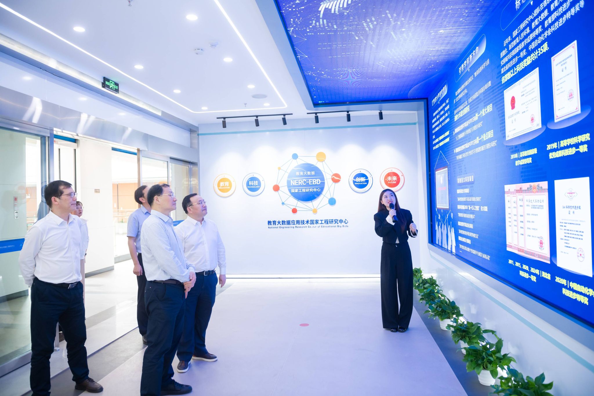 调研期间,魏士强一行实地考察了文学院中国语情与舆情研究中心、教育大数据国家工程研究中心,听取了华体会官方版网站登录入口推进教育数字化建设、宣传思想文化工作、AI辅导员工作等方面的汇报。