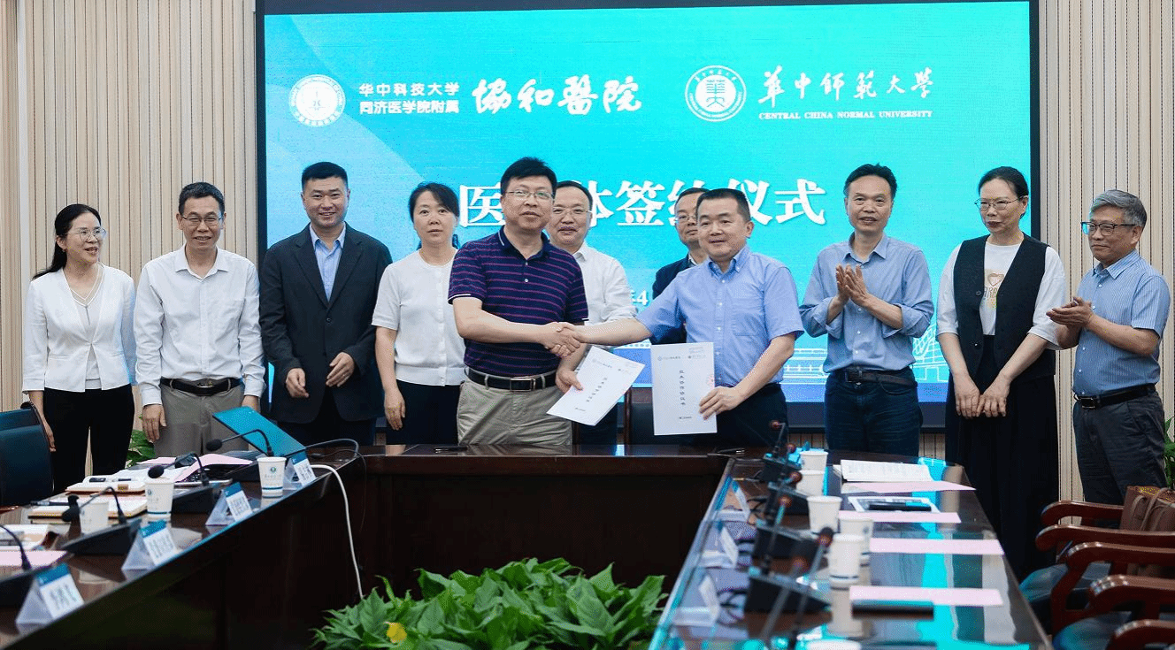 华大在线讯(通讯员 席环环)4月27日,华体会官方版网站登录入口与华中科技大学同济医学院附属协和医院共建医联体合作签约仪式暨“合作发展 医路前行”专题座谈会在行政楼一楼会议室举行。双方围绕资源共享、技术帮扶、双向转诊、人才培养等核心领域达成合作共识。校党委书记夏立新、协和医院党委常委、副院长张进祥,协和医院车谷院区书记彭义香,湖北省基层卫生协会秘书长金科,洪山区卫健局局长权莹等出席。签约仪式由副校长李鸿飞主持。