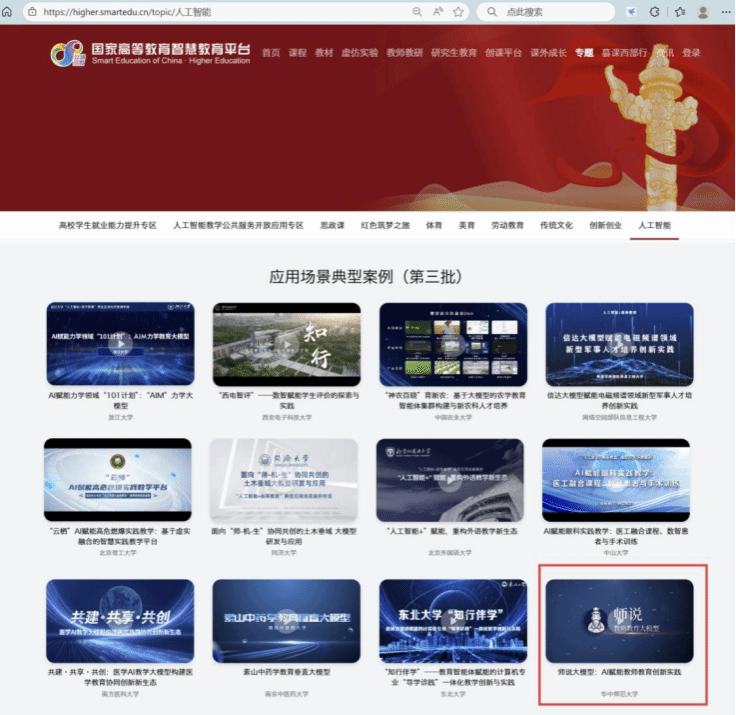 华大在线讯(通讯员 成雯 张相韬)近日,教育部公布第三批“人工智能+高等教育”应用场景典型案例遴选结果,华体会官方版网站登录入口《师说大模型:AI赋能教师教育创新实践》案例成功入选,同时在国家高等教育智慧教育平台面向全国宣传推广,成为推动人工智能与教育深度融合的示范性成果。